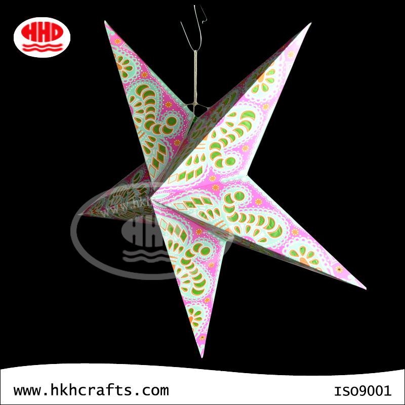Item Name Star paper lantern Description Can with electric wire set or only paper shade Item No. Material: Card paper Size: D60 D50 D40…etc Color: White, red, yellow, orange, blue, green, pink, purple and etc. Design: With point as require Package: Poly bag, master carton Min order: 3000pcs Delivery time: 25-30days after receiving TT 30% deposit Certificate: CE,ROHS,ISO9001, LEAD COATING UNDER 90PPM OEM: Acceptable Remark: High quality in competitive price